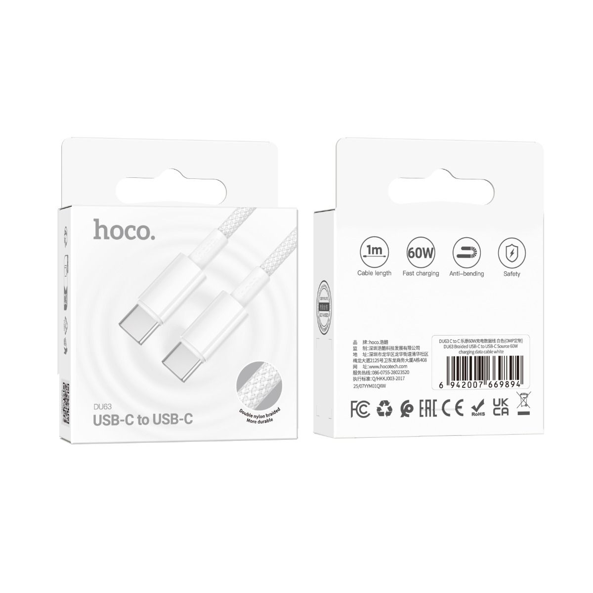 Hoco DU63 USB-C to USB-C 60W Braided Charging Cable - White