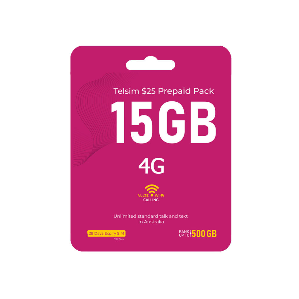 The Telsim $25 Prepaid SIM Plan offers unlimited standard calls and texts within Australia with a typical 28-day expiry. Operating on the Telstra Wholesale Mobile Network, it provides access to 4G coverage, along with features such as VoLTE, Wi-Fi Calling, and data banking. Data inclusions may vary by promotion, with some plans offering around 15GB. There are no lock-in contracts, making it a flexible option for everyday mobile use.